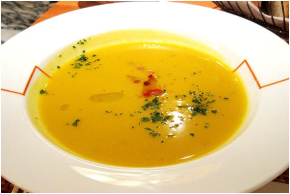Cream of Pumpkin Soup served with Julienne of Sun Dried Tomatoes