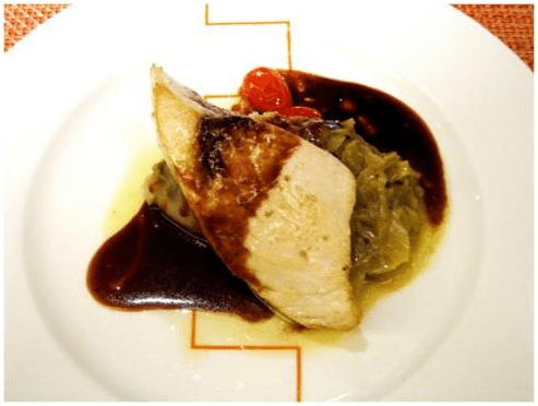 Pan Seared Swordfish Loin served with Braised Leek and Marsala Wine Sauce