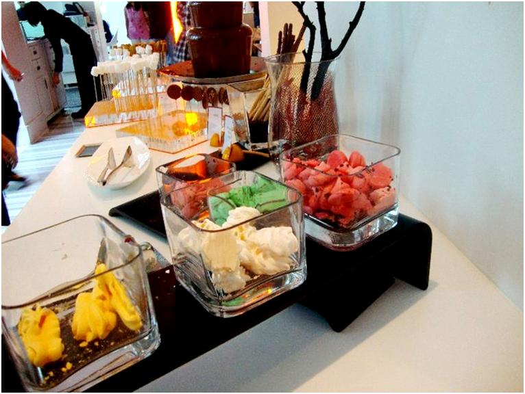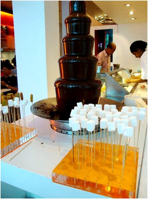 - Fondue – only one type of chocolate. they have marshmallows, meringues, madelaines and all sorts of fruits for it.