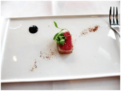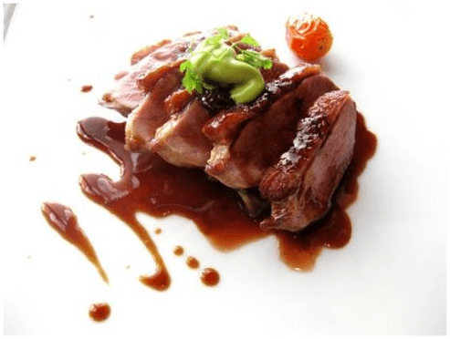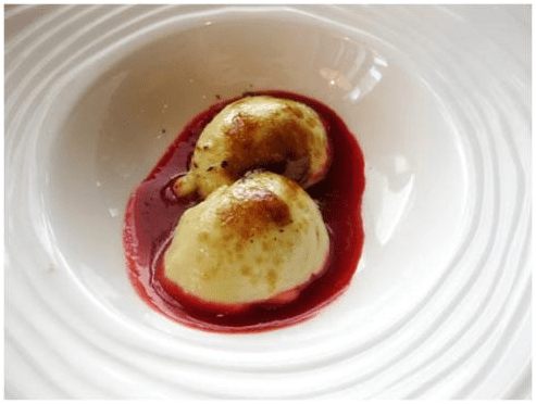 Amuse bouche – smoked duck terrine with raspberry sauce