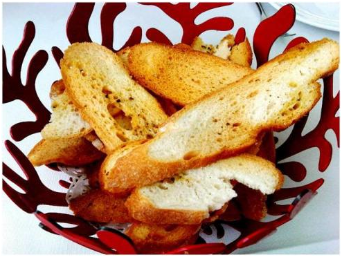 Complimentary basket of bread. This bread has a biscuit texture and was seasoned with some spices.