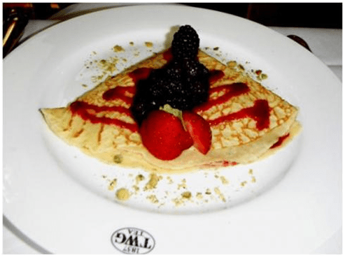 1837 CRÊPE – Crêpe served with homemade berry marmalade made of raspberry, blueberry, cherry and blackcurrant infused with 1837 Black Tea. ($14++)