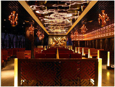 “ Be wowed by the restaurant’s plush dining ambience that is intricately designed to capture the bygone era of Imperial China in a contemporary fashion. The expansive 206-seater is adorned with textured wood pillars and wall panels made from 100 year old timber and dressed in rich deluxe colours for a stunning contrast. The restaurant’s dining space is further enhanced by the mood lighting of the customised imperial court lamp chandeliers and the golden sculptural centerpiece, a befitting backdrop for a Qin Dynasty Emperor’s throne.” – From their website