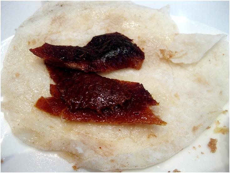 Despite the disappointing pancake wrap, the duck skin was fantastic! It had all elements of a good Peking duck.