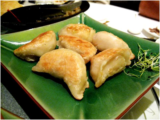 Juicy pork dumplings fried to a golden brown and accompanied with the playful tanginess of wasabi