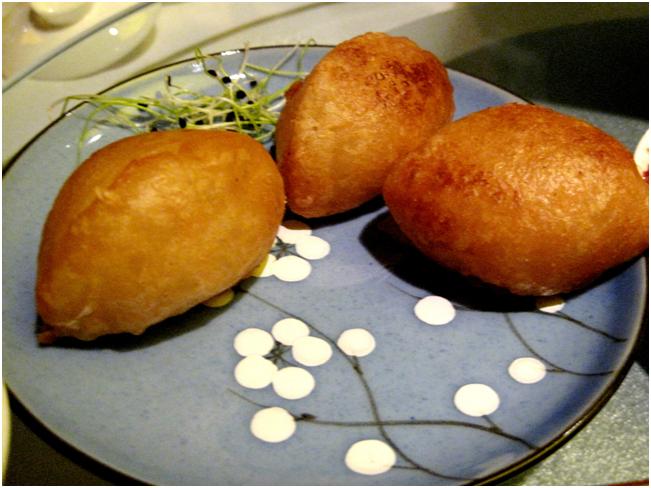Deep-fried golden brown dumplings drizzled with a rich blend of foie gras gravy