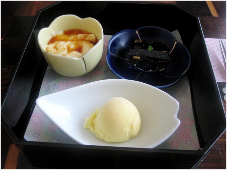 I was pleasantly surprised to be presented with a trio of desserts rather than just one! Some restaurants serve just a small pudding, mochi or even fruit for their dessert course as part of the set menu. But I’m glad it’s different here.