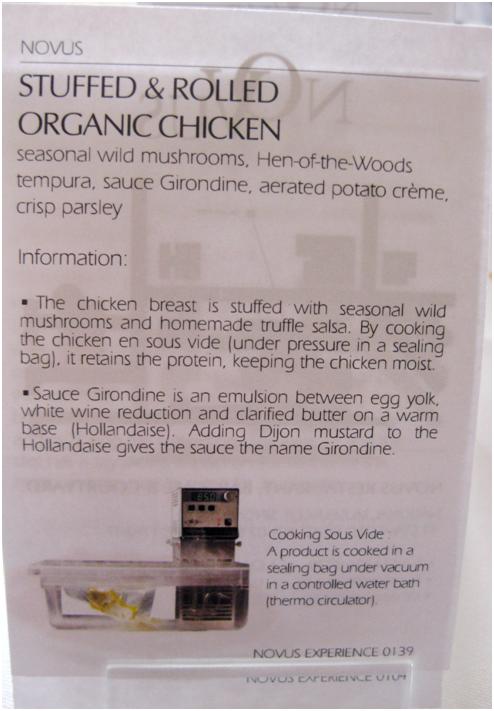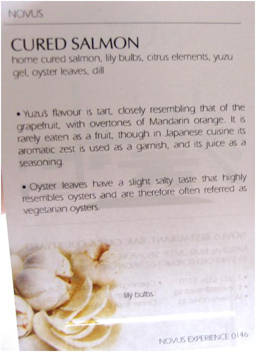 Sorry I haven’t tried their dinner before. They serve ala carte and 6 course degustation for dinner, and probably 3 course meals (but more than $40++) as well but I can’t be too sure about the latter. their current menu is available here http://www.novus.sg/blog/wp-content/uploads/2011/09/New-ALA-CARTE-MENU-Sept1.jpg and if you notice for lunch they serve dishes from their ala carte menu, hence it’s much more worth it to come during lunch, as the cost of one main course is already more than the 2 course set ($32++) or 3 course set ($40++) during lunch, unless you want to try items not available during lunch.