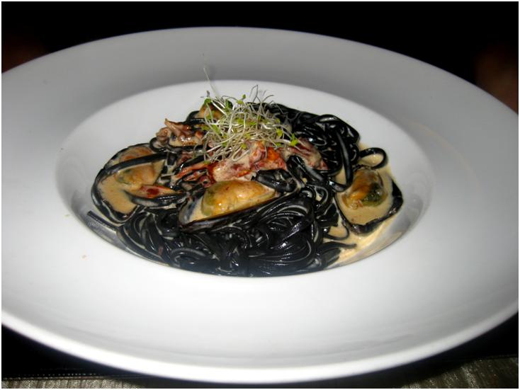 Squid Ink Pasta with Blue Mussels and Sun Dried Tomatoes