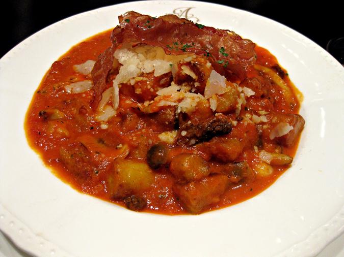 Parisan Gnocchi sautéed with onions and an assortment of field mushrooms in a pink tomato sauce with Italian parsley and aged parmasen cheese