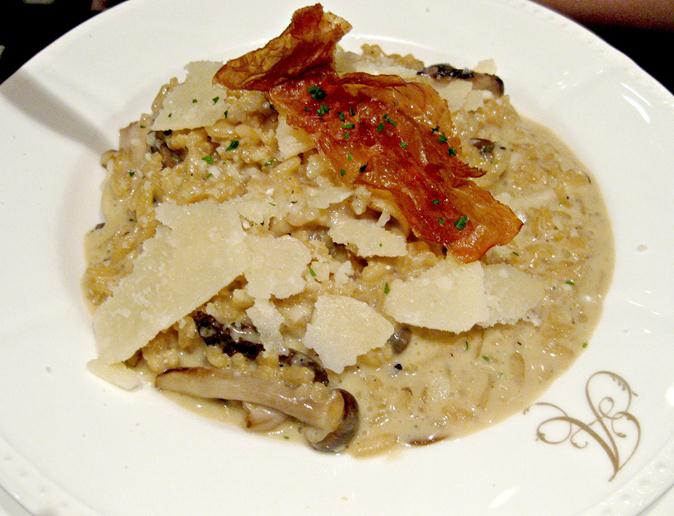 Creamy Arborio rice simmer with exotic field mushroom & white wine, garnished with crispy Serrano ham