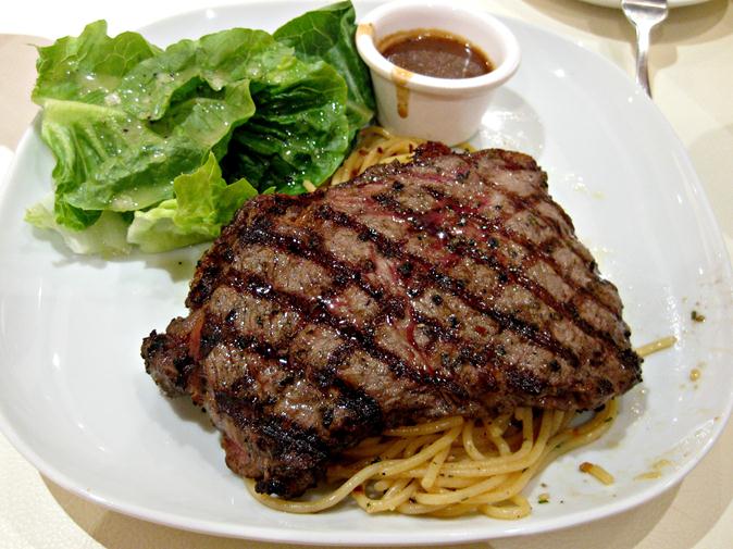 This was my order. The steak was evenly grilled and luckily my grill marks were not burnt marks. The steak was moderately juicy and it tasted good for the price!
