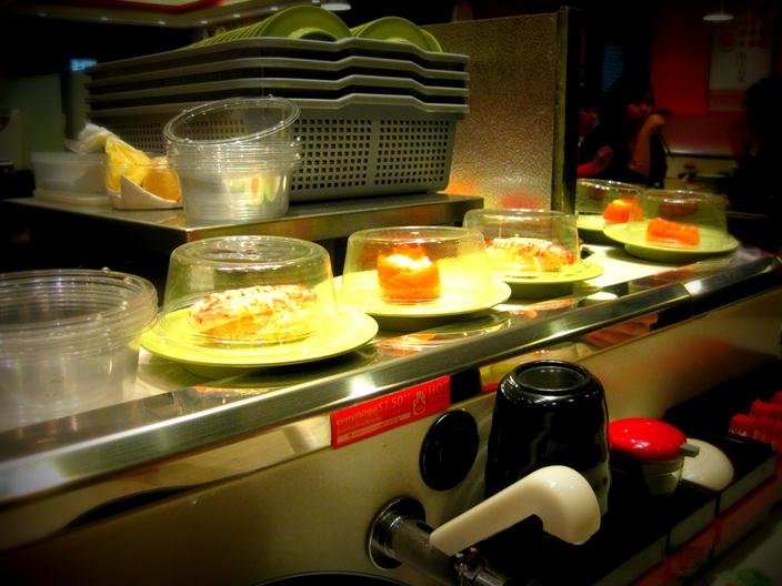 Tip #2: sit at the side of the conveyor belt, facing the preparation area of the chef. You get to see what’s freshly made and you can even order through the friendly chef, which is much speedier than through the waiters.