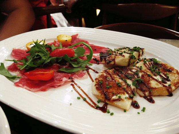 Pan Fried Smoked Cheese with Parma Ham and Rocket