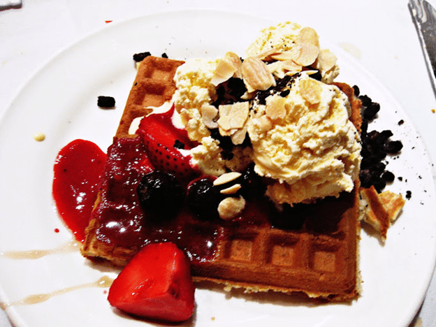 I headed for the desserts next. There was a waffle station which made pretty good waffles! The ice cream was fine but not the best brand around.