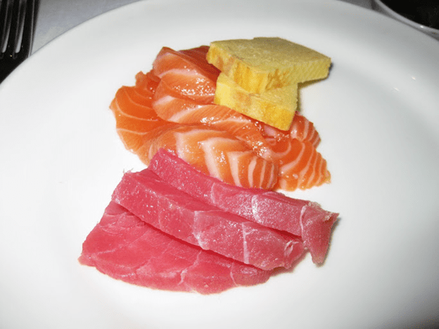 The chef in charge of sashimi slicing has terrible cutting skills too. At very basic the slices should be separated but he sort of failed at doing that.