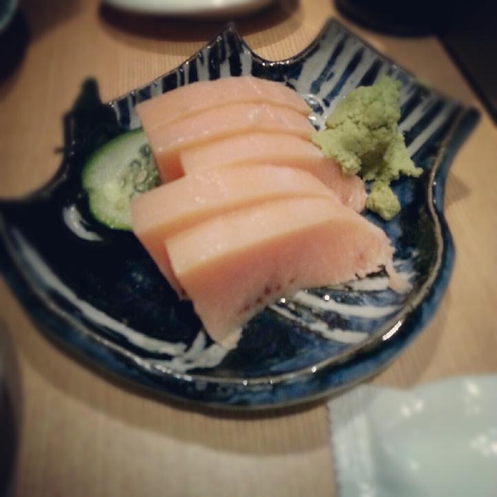 I ordered the Sashimi Moriwase as I didn’t want to have rice. However, I was disappointed when the food arrived, as there wasn’t a stark difference between the sashimi amount of the moriwase and the chirashi don. The shashimi moriwase has 1 more (small) mekajiki, but the chirashi don had tamago and uni. It doesn’t really makes sense that way, because the chirashi don comes with miso soup, otoshi, and a small dessert. Even if I discard the rice, it makes better value than ordering sashimi itself!