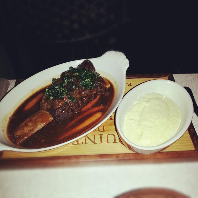 They also serve it in a portion for 2. The mashed potatoes were on the creamy side taste wise, as in it tasted like it had a lot of cream, but it didn’t really appeal to me. the short ribs were perfectly tender and I have no idea why they provided a steak knife. The taste isn’t as pungent as beef cheeks so this is definitely better.