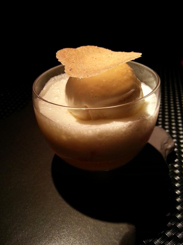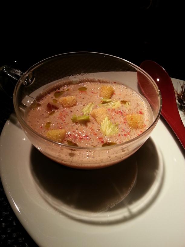 Foie gras custard with red Porto wine and parmesan foam