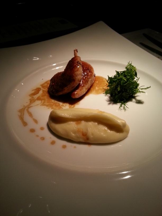 Foie gras filled free-range quail with mashed potatoes