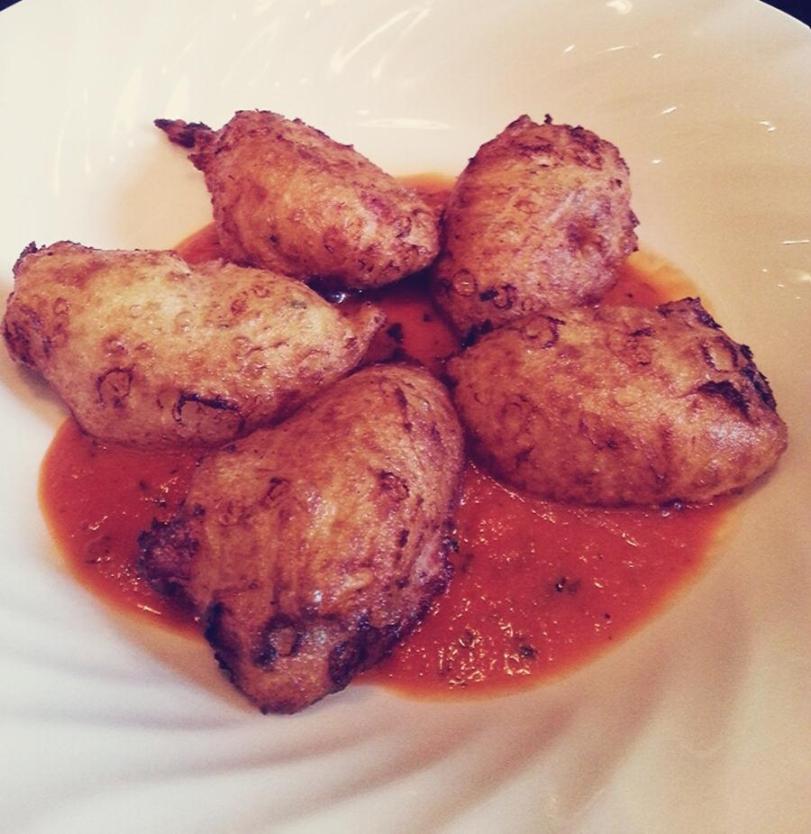 Italian roasted Ham and smoked Scamorza cheese fritters with spicy tomato sauce – $16.00++
