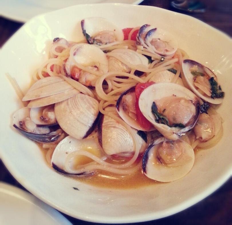 Spaghetti with Vongole in white wine sauce and parsley – $26.00++