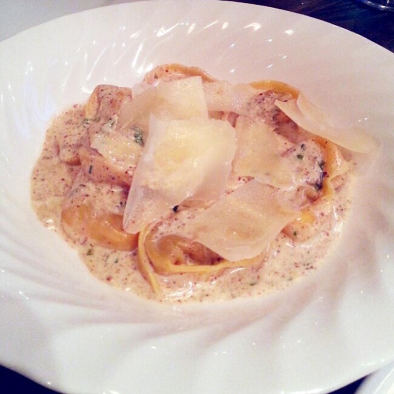 Homemade beef Tortelli with dry porcini mushrooms and cream sauce – $24.00++