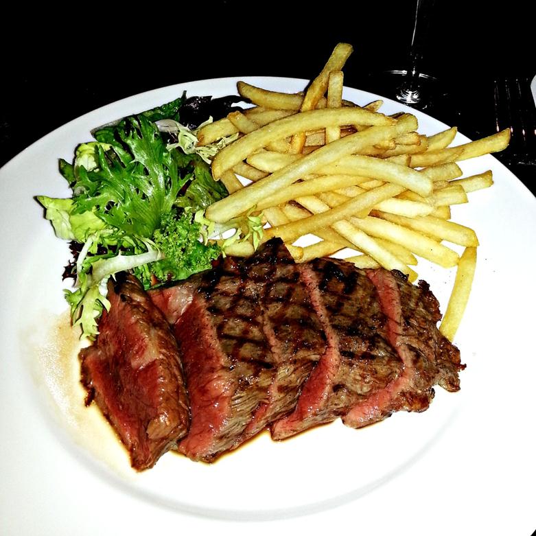Beef steak with shoestring fries and mesclun salad – $30.00++