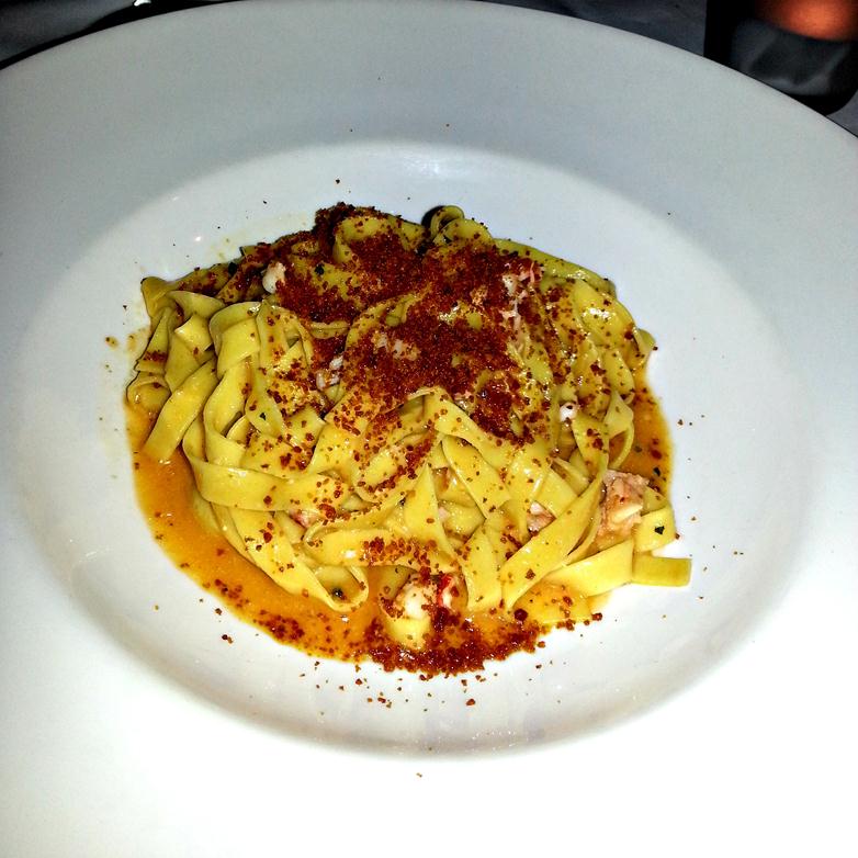Lobster tagliatelle with saffron and sea urchin sauce – $55.00++