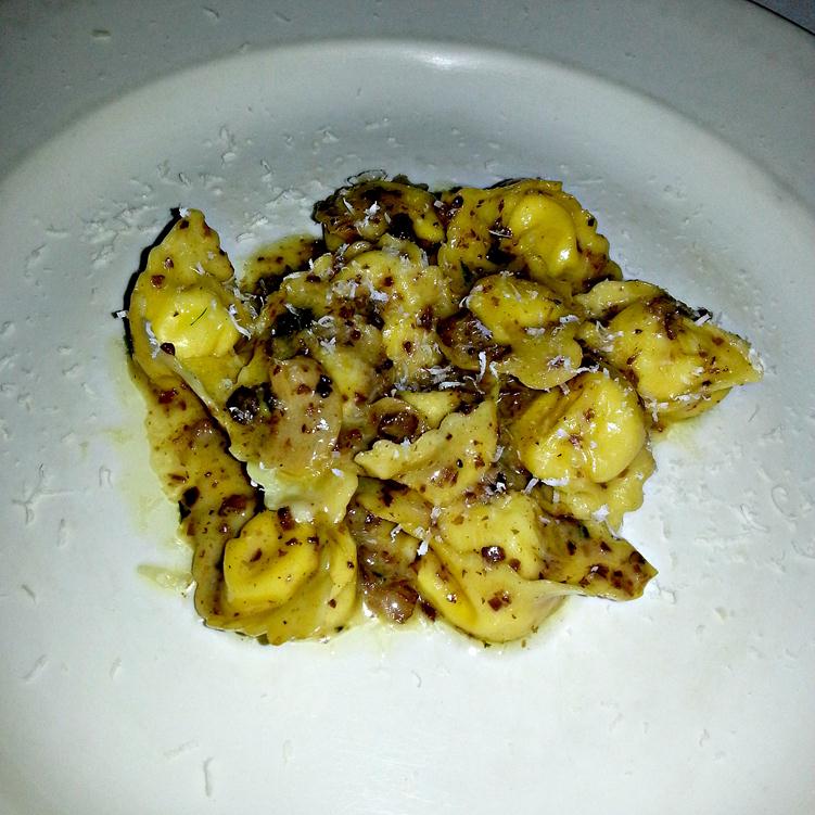 This stuffed pasta was on the sweet side, because squash is generally sweet. This was like nothing I ever tasted before, and it was good. The filling was creamy and slightly flowy. Generally, I love stuffed pasta and this was among the better ones which I’ve tried.