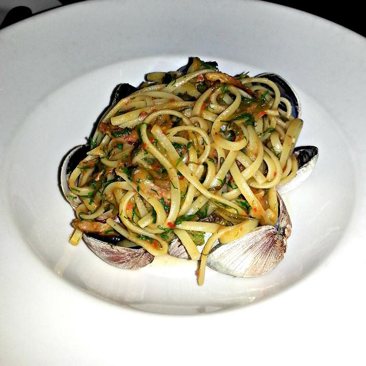 Linguine with clams, pancetta & spicy chiles – $29.00++
