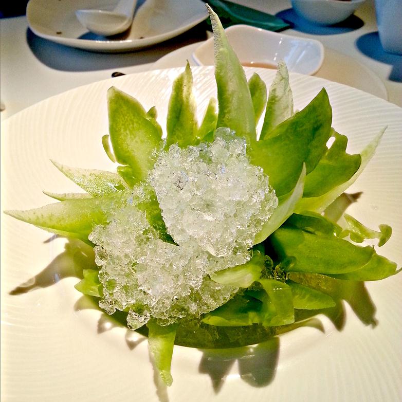 This is probably thinly sliced cold bitter gourd served with a honey dip. It was my first time trying bitter gourd like this and it was quite nice. The bitterness was well balanced with the honey and it was quite appetising. If you like bitter gourd, you can try this.