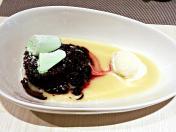 Warm Chocolate Cake with Apple Sauce and Vanilla Ice Cream