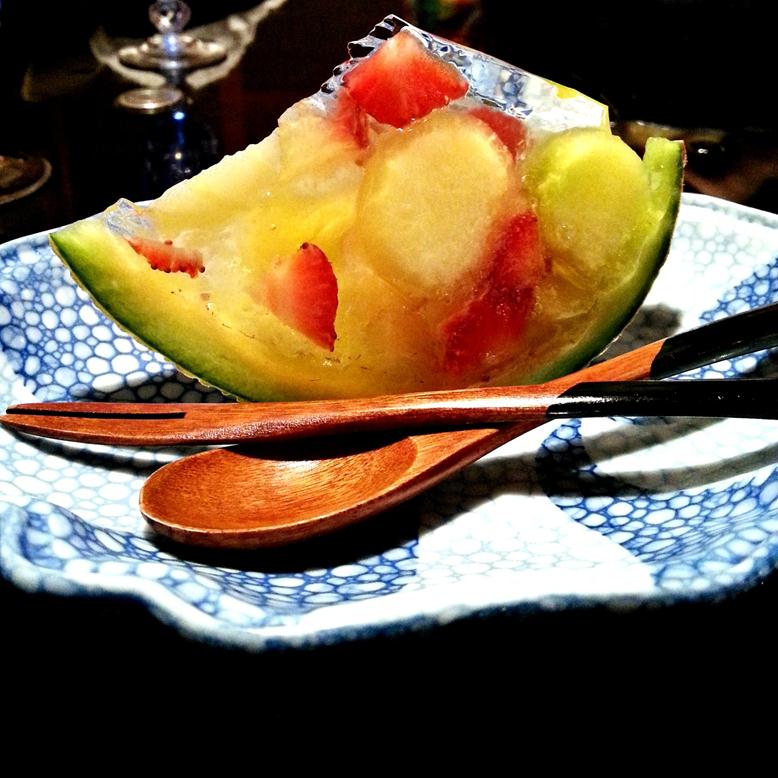 Although it’s predominately Kaiseki style here, I wouldn’t say that it’s entirely traditional. We had appetizer of sesame tofu, clear soup with anago fish cake, raw dish of katsuo and hirame sashimi with okura and ume, grilled fish, simmered dish of tako and pumpkin, rice and pickles, dessert of konnyaku jelly as well a beautiful platter for 2 containing duck, corn with fish cake, noodles, anago zushi, (box sushi), tamago, bean, and a few others which I was unable to identify. I am unsure which course of Kaiseki this platter falls under. I really liked everything I had, though I wouldn’t say this is a MUST try in Japan. The konnyaku jelly served for dessert was particularly memorable. It was beautiful.