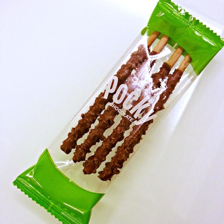 Pocky Crush (matcha flavour) was better than the normal Pocky. It comes in a box with several packets of this, and costs ¥500 ($6.25) for 2 boxes.