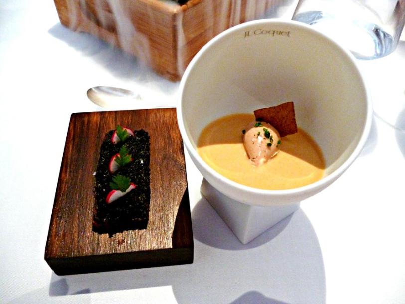 Olive Oil Biscuit, Chamomile and Coriander Jelly and Ice Cream Cornet