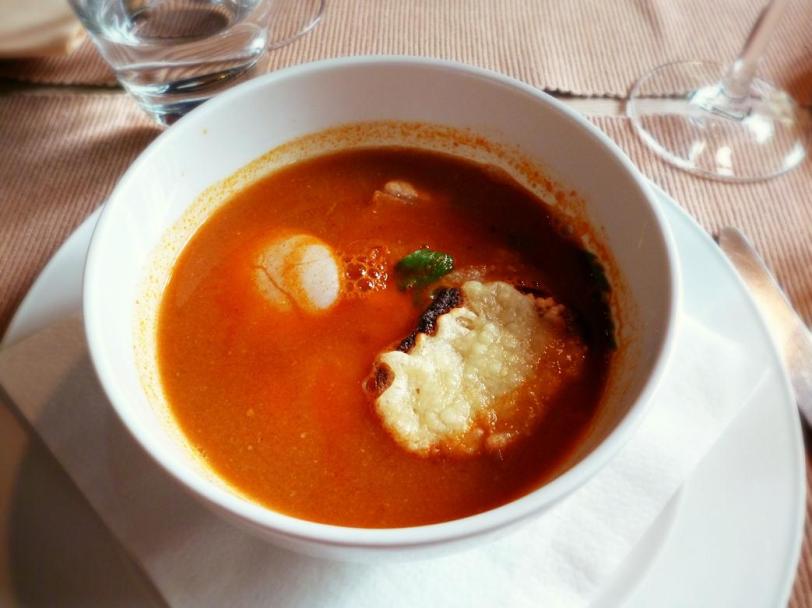 Minestrone with scallops, lobster and red mullet