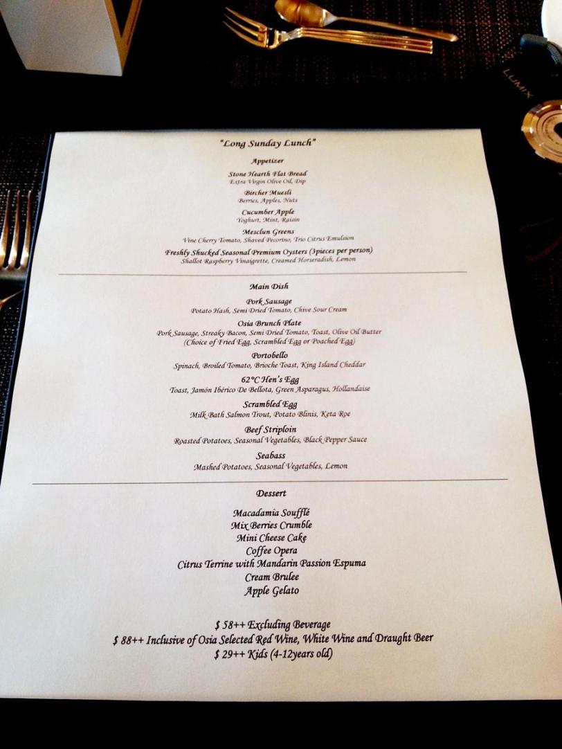 Fortunately, Osia offers lunch on Sunday! I’ve been here a few times and I generally like their food.