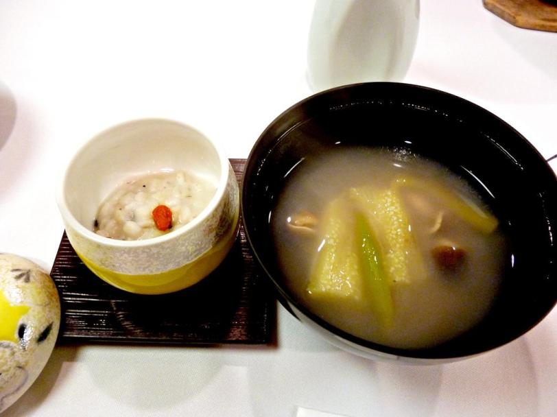 Soup appetiser: Soup mixed with ground lotus root