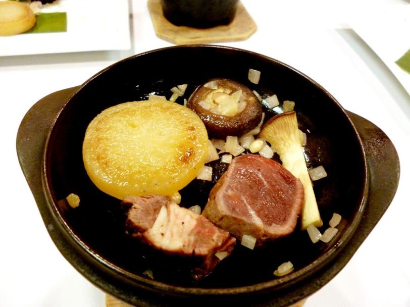 Appetiser: Baked-dipped Barracuda & mushrooms and crown daisy
