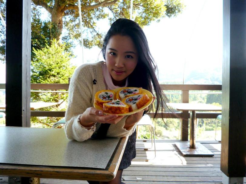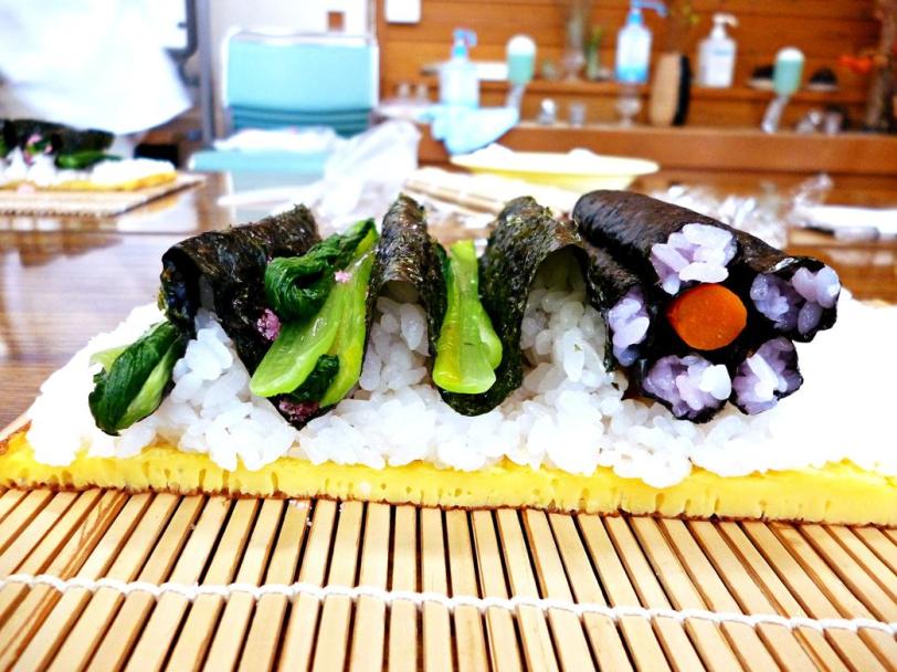 The highlight of the lunch was making my own sushi! I have attempted simple sushi rolls before but for something so complex looking it is the first. These patterned sushi is known as matsuri zushi and is quite popular in Chiba. The pattern I’ll be making is the camellia flower (tsubaki).