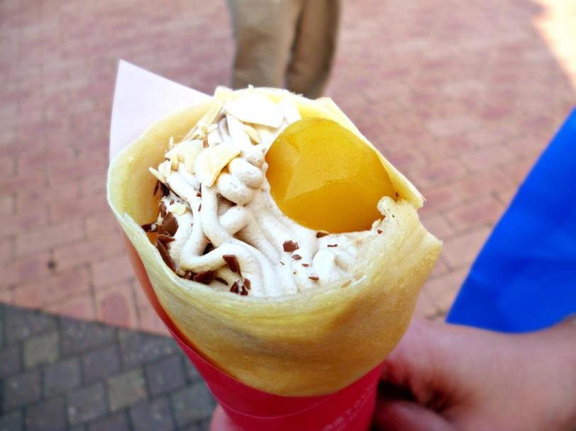 The combination of the chestnut cream, chocolate flakes, crispy nuts, fresh cream and soft fluffy crepes was just heavenly.