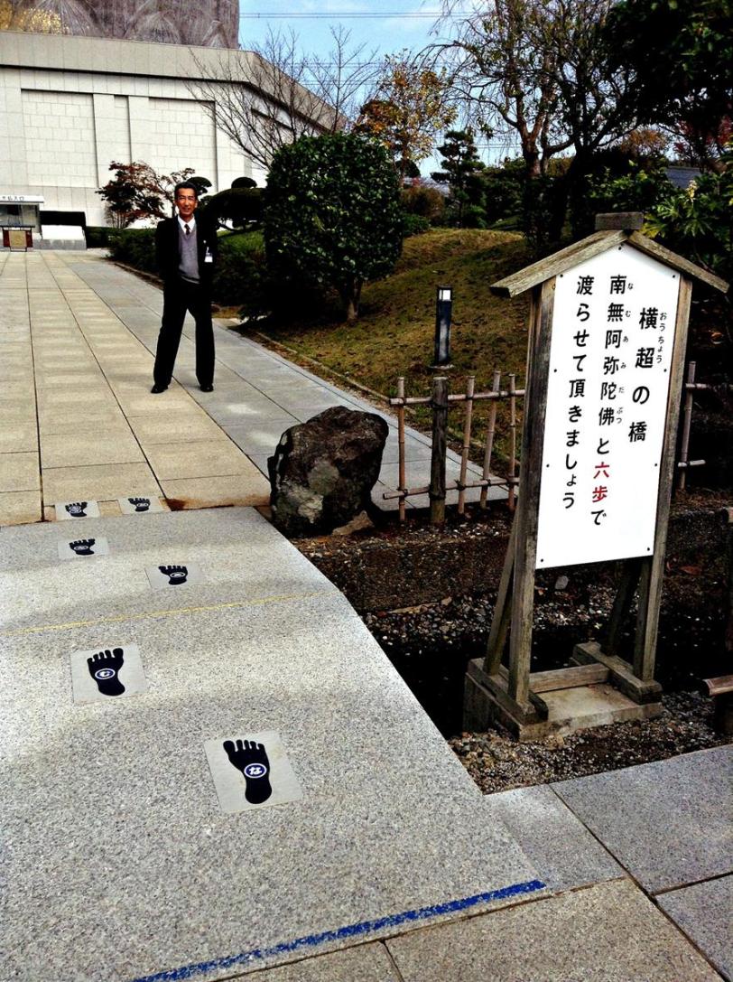 Say 南無阿弥陀仏(なむあみだぶつ) – Na Mu A Mi Da Butsu while stepping on each step walking in.