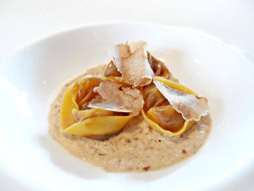 Bone marrow ‘Agnolotti’ served with walnut pesto and white truffle – $58++