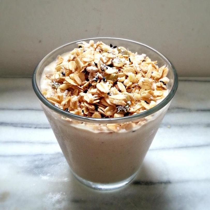 I use Adam’s creamy unsalted peanut butter. Adam’s is the only brand of peanut butter I know of that contains 100% peanuts and nothing else – no sugar, no hydrogenated oil, no corn syrup! To be honest it was the worst tasting peanut butter when I first tasted it straight from the jar, but as an ingredient, it was ideal because the sweetness from the bananas covered everything! If you use Skippy’s you’re just wasting calories from the unnecessary ingredients. I added a pinch of sea salt too.