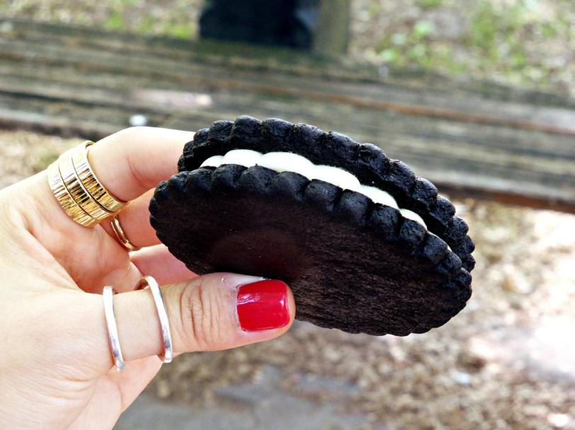 These should be eaten when chilled because the filling would be molten at room temperature. The biscuit is better than a regular Oreo because the chocolate is darker and I reckon better quality cocoa powder is used. The taste ultimately depends on the quality of cocoa powder because that’s a big ingredient in baking these. The filling was nothing like the commercial artificial white rubbery sugar loaded ‘cream’ in Oreo, but was rich, smooth and decadent. I don’t recommend sharing because you will want everything for yourself.