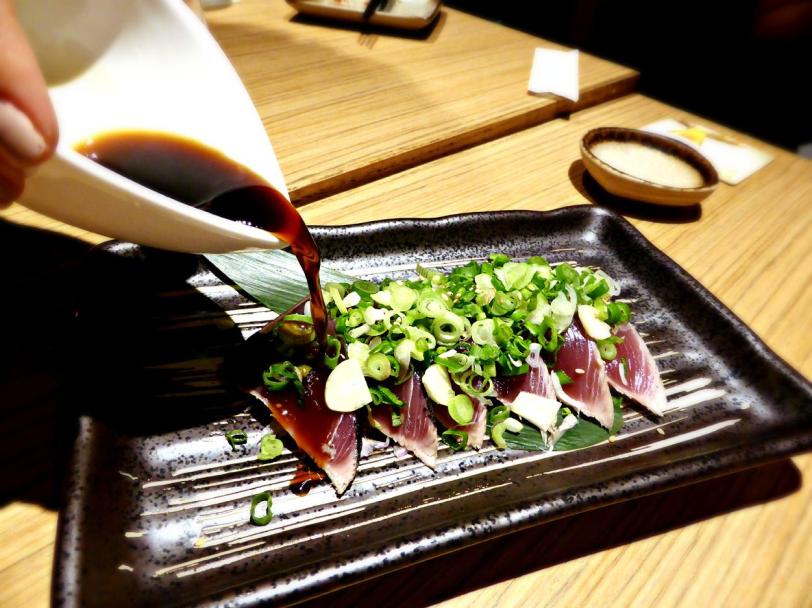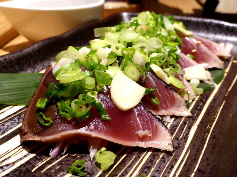 Bonito Fish Cooked in Hay Straw Marinated with Ponzu Sauce – $14.00++