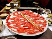 To eat, you blanch the beef slices to the doneness up to your liking and dunk the whole thing in the dipping sauce. The meat was very tender and fresh.
