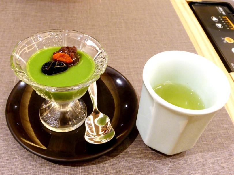 The lunch ended off with green tea and matcha pudding.