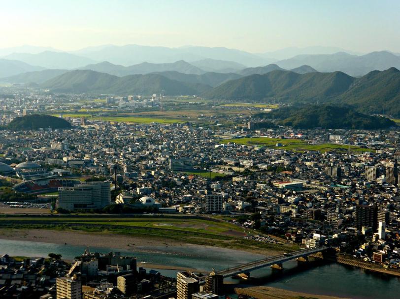 This view sums up Gifu City. It quite a country side place surrounded by mountains and a river. In front of the stadium somewhere towards the middle left of the photo is Gifu Miyako Hotel, the hotel I put up at for the next 3 nights.
